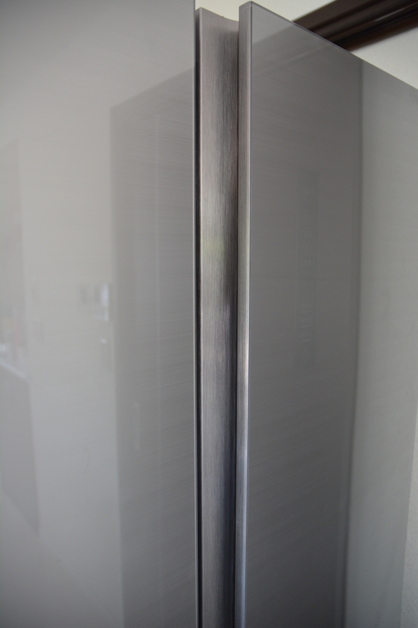 AQUAのSBSタイプは正面がガラスドアのみ。ボタンも温度表示も触れないと出てこないタッチパネル式で、インテリアの邪魔をしません。「言われなければ冷蔵庫だと思わない」というくらいスッキリしたデザインは、インテリアを大切にする家にこそ向いています。
