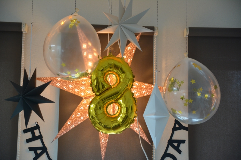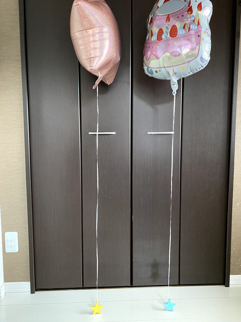 ナンバーバルーンはいつもは特大サイズを買っていましたが、ダイソーで買えるようになったので小さいサイズで我慢してもらいました。
