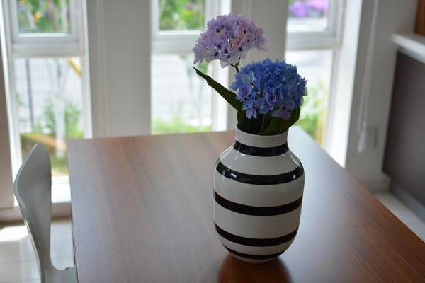今年は仕方ないので、手持ちのあじさいの造花をオマジオ フラワーベースに。
