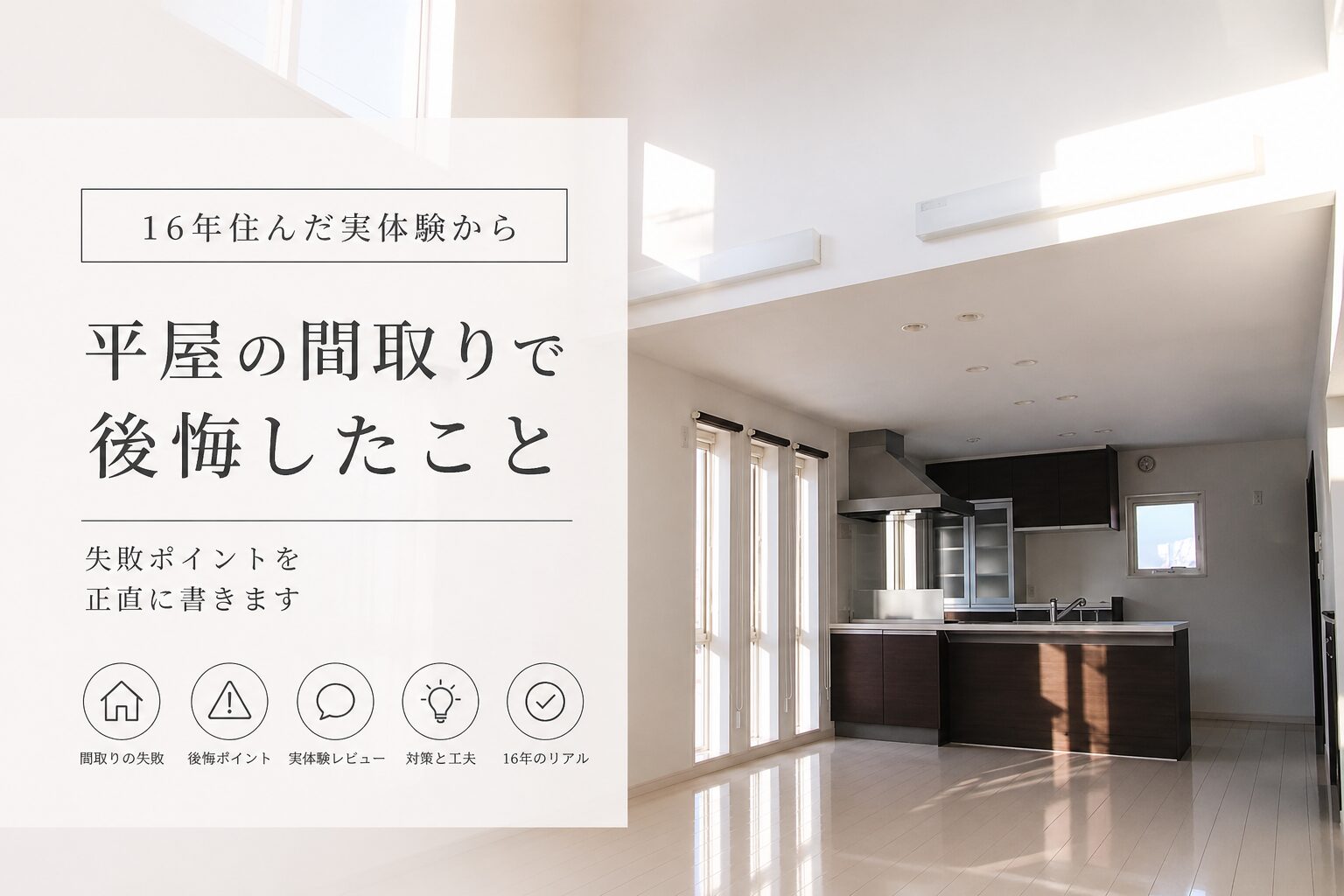 📌 平屋に16年住んだ総合レビュー → 平屋に16年住んだ正直レビュー|劣化・後悔・良かったこと・光熱費まで全部公開【2009年築】