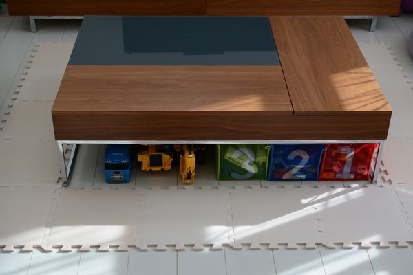 リビングのテーブルの上でトミカで遊ぶのが最近のお気に入り。