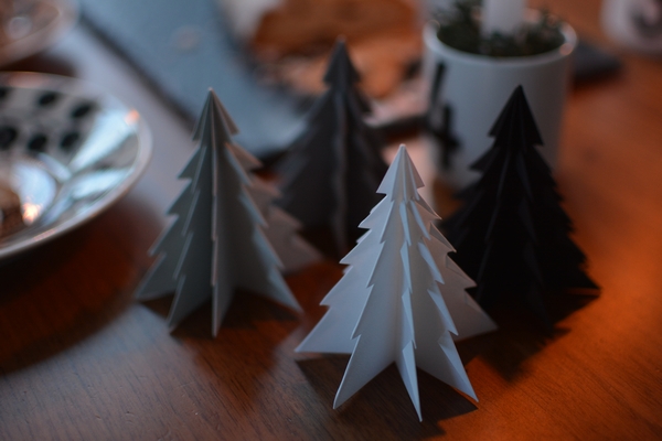モノトーンの折り紙で作った手作りツリーも周りに置いてみました。