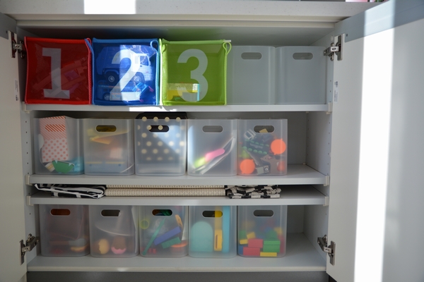 1つ出して、次に違うおもちゃで遊ぶ時は前に遊んでいたおもちゃは必ずしまってから、という風にしていきたいとおもいます。