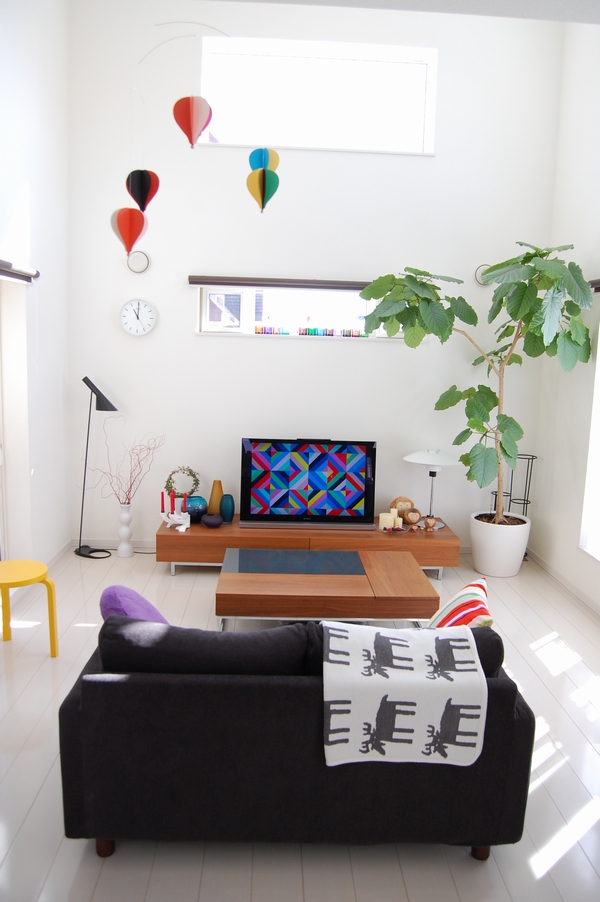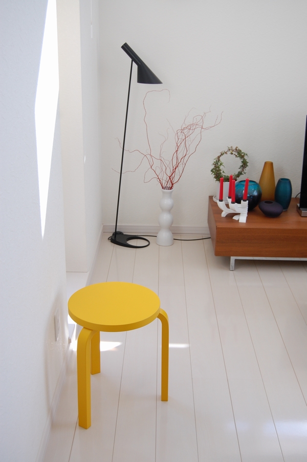 テレビの壁紙の影響もあると思いますが、スツール60をアクセントに使ってかなりカラフルになりました。