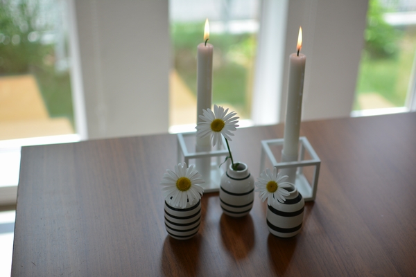 今年はオマジオ フラワーベースのミニに一輪挿しで小ぢんまりと。