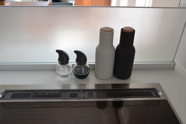 塩コショウのグラインダーは先日紹介したmenuのボトルグラインダー。