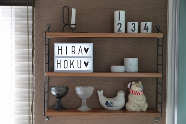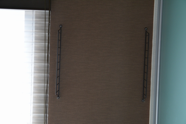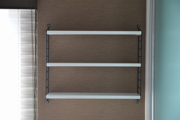 ストリングポケットの棚板と壁紙の色は同色系の方がいいような気が個人的にはします。