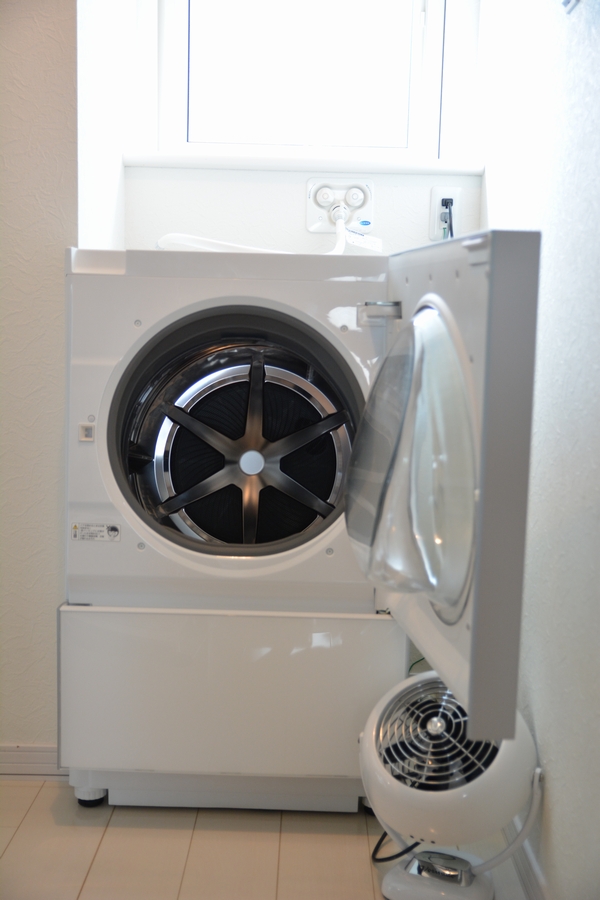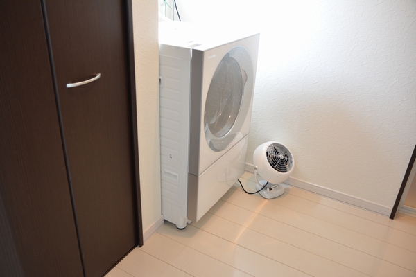 乾燥機にかけない洗濯物は脱衣室に干してサーキュレータを回しています。