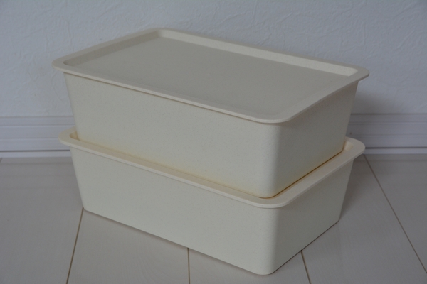 ただ、ふたの部分で出っ張りと入れ物の部分の形が台形なので収納としては無駄なスペースができちゃうかな?