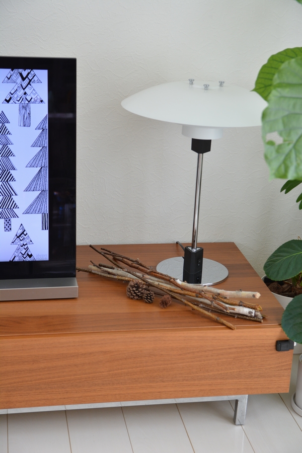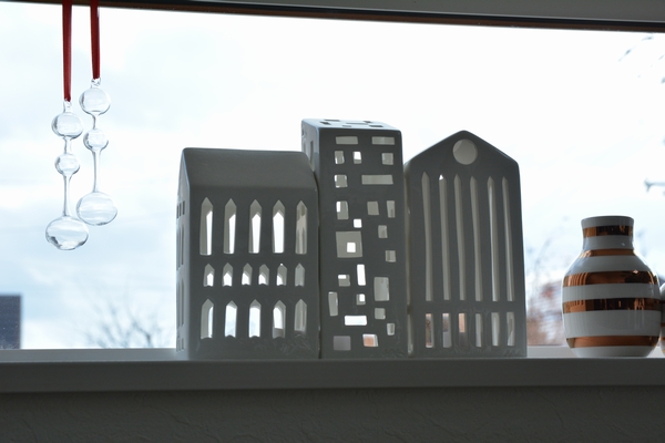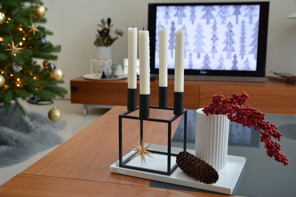 テレビ上の窓際には今年もケーラー アーバニアを3つ並べてディスプレイ。
