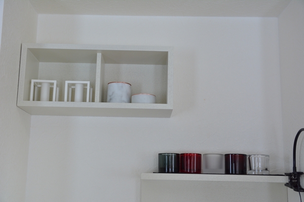 茶色い棚板をカッティングシートで白か大理石調にしようと思っています。