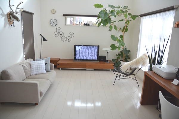 ウオールナットのテーブルがなくなったことで白の比率がアップ。