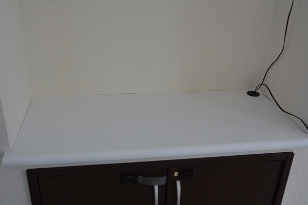 この棚板の茶色をどうしても白系にしたくて。