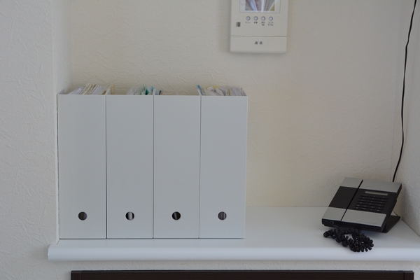 クリアファイルと無印良品のファイルボックスを使って収納しています。