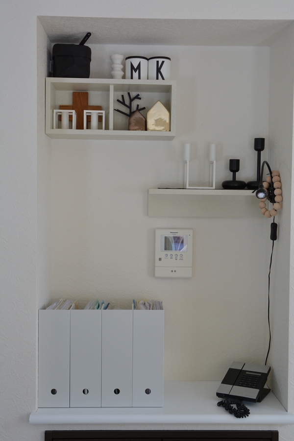 でもこれでも棚板を白にしたおかげでスッキリ見えるようになったのでいいかな?と思ってます。