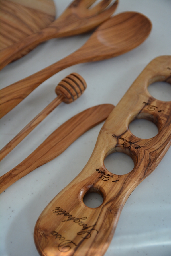 5種類のオリーブウッドのキッチン用品を使っています。