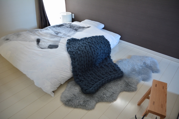 チャンキーニットブランケットで寝室模様替え