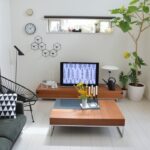 四角いテーブルと丸いフラワーベースの組み合わせが絶妙!