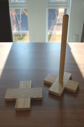 こちらも土台がクロスになっていて、真ん中にキッチンペーパーを刺す棒がそびえたっています。
