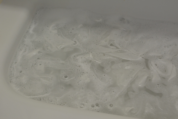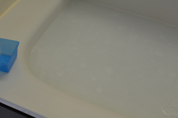 お湯をためてそこへスプーン1杯のオキシクリーンを入れました。