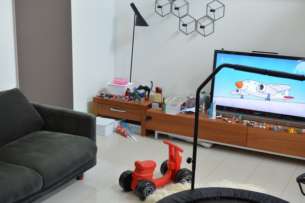 ただ、実際にリビングにトランポリンを置いてみたらやっぱりすごい存在感で…失敗だったかも
