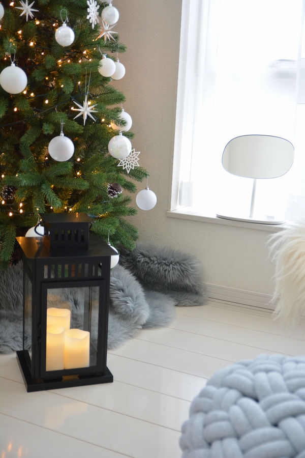 ツリーの足元には大き目のランタンを。